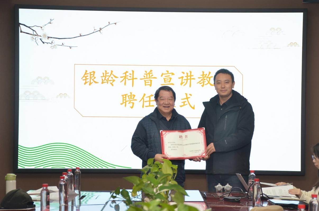 为持续提升科普育人实效,科普宣讲团特聘请罗庆生教授担任“银龄科普宣讲教师”并颁发聘书。